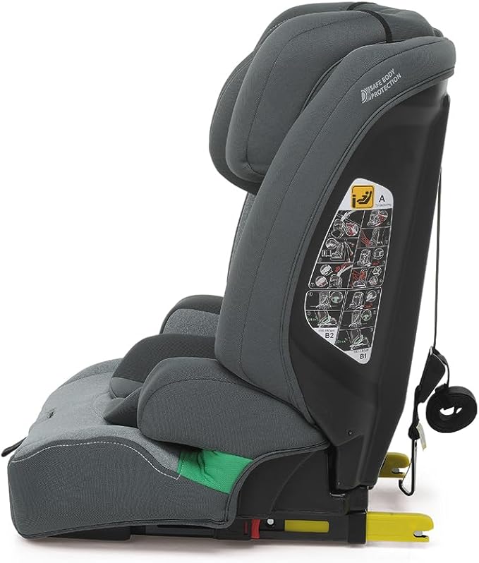 Anatomisk sæde med sidekollisionsbeskyttelse (sikkerhedskropsbeskyttelse). Godkendt til fastgørelse med bilens 3-punktssele.