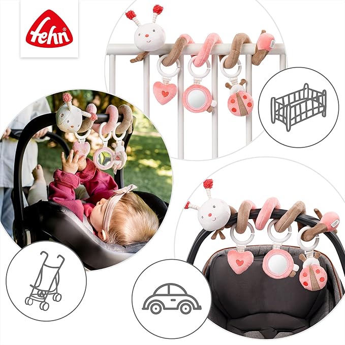 PRAKTISK OG NEM AT VEDLIGEHOLDE – Spiralranken kan let vikles omkring seng, kravlegård, barnevogn eller autostol takket være de bevægelige vedhæng og kan vaskes ved 30 °C.