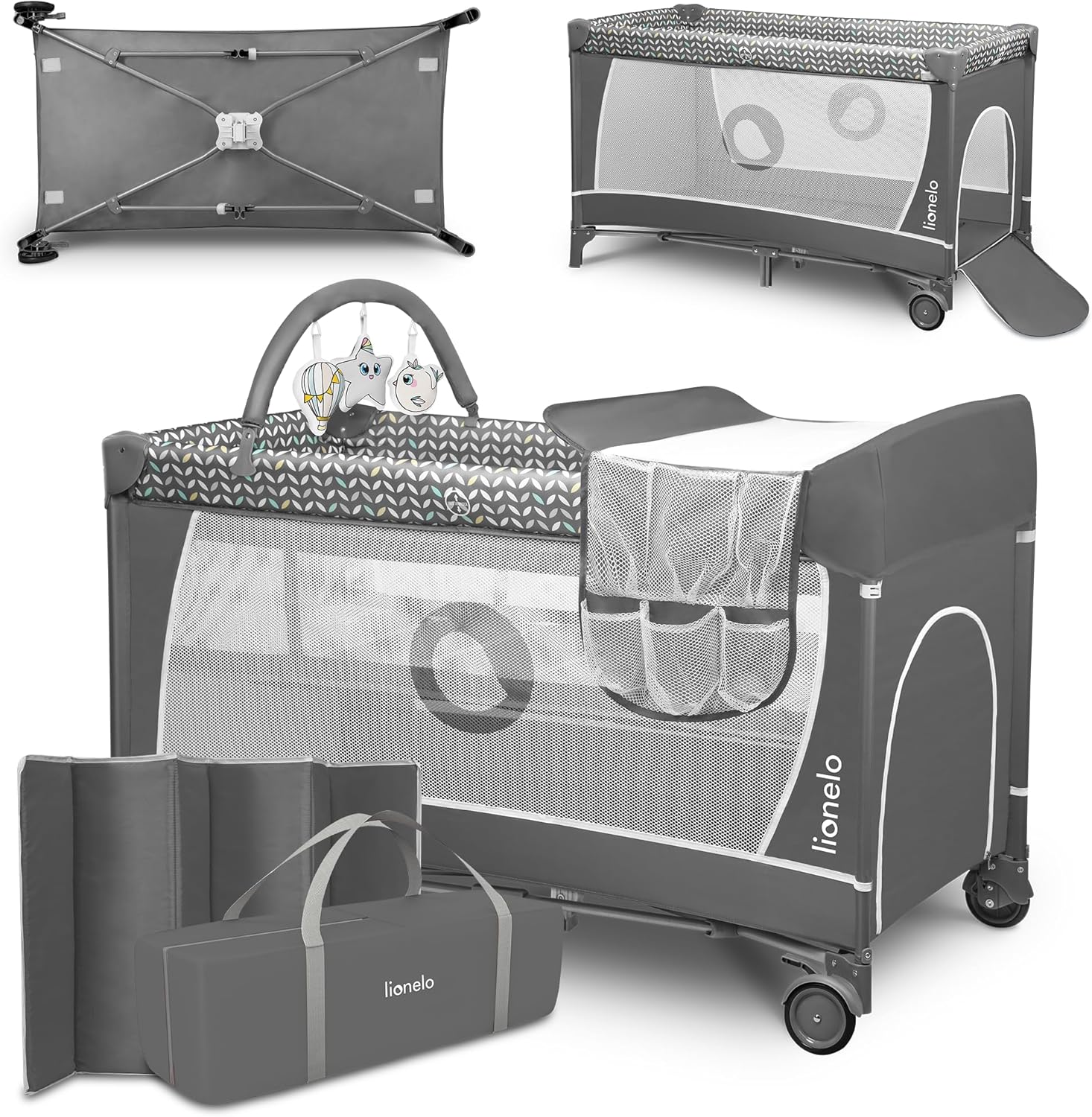 Lionelo Flower 2-i-1 Rejseseng og Legegård, Grå