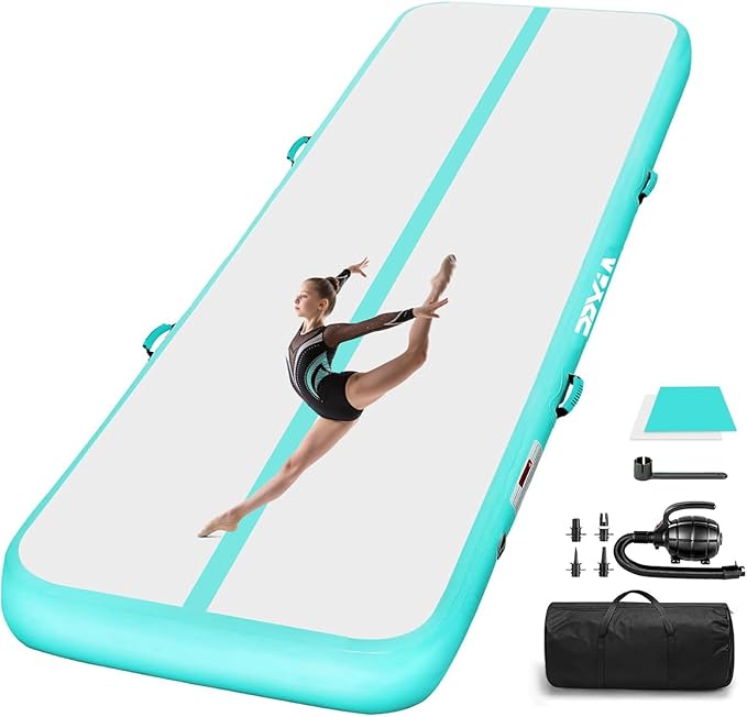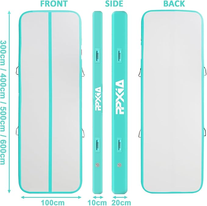PPXIA gymnastikmåtte, træningsmåtte, tumblingmåtte med komplette tilbehør, oppustelig gymnastikmåtte til hjemmebrug, udendørs og yoga